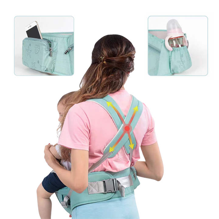 Este práctico cargador 3 en 1 está diseñado para acompañarte en cada etapa del crecimiento de tu bebé, permitiéndote llevarlo contigo de forma ergonómica y cómoda.