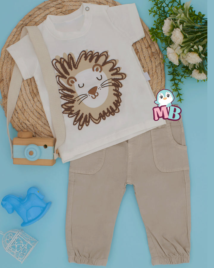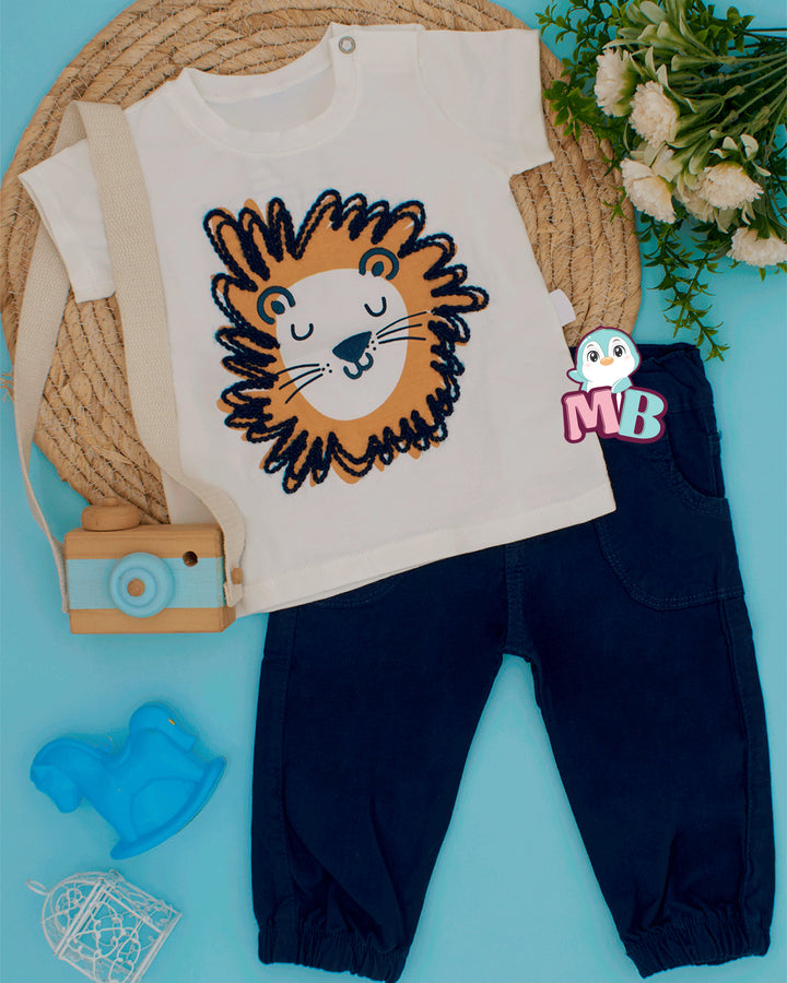Este hermoso set de camiseta con estampado de leoncito y pantalón es perfecto para que tu peque luzca cómodo, fresco y con mucho estilo.