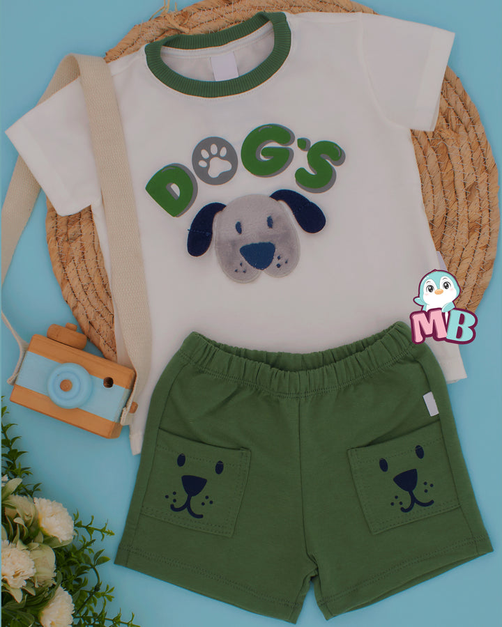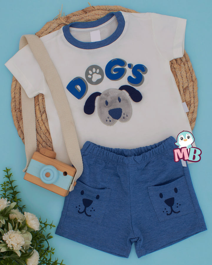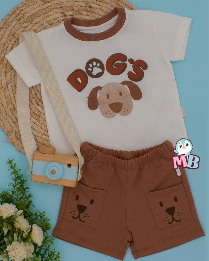 Incluye camiseta blanca con un adorable perrito en relieve y short con bolsillos estampados que hacen juego. Su tela es suave, fresca y perfecta para que tu peque juegue y se mueva con total comodidad.