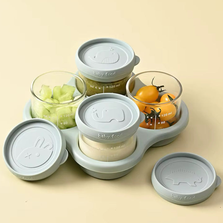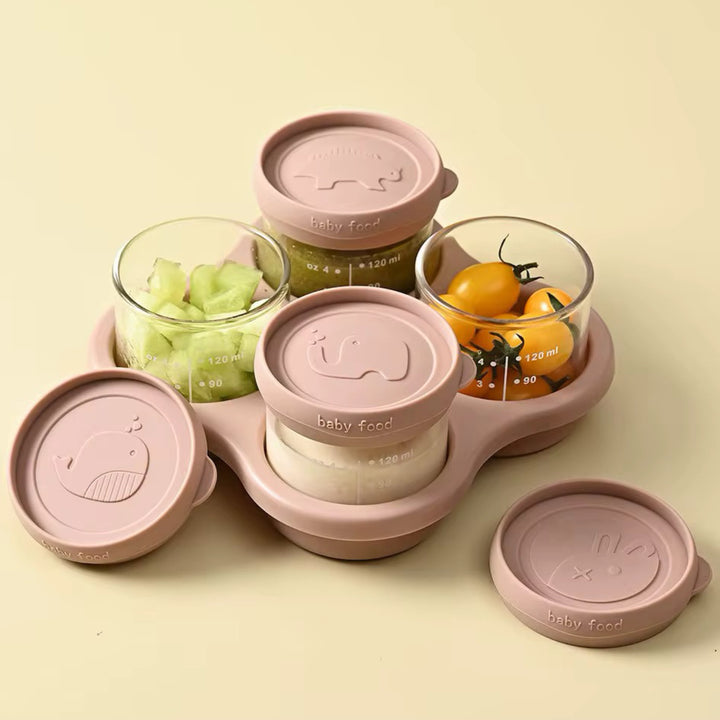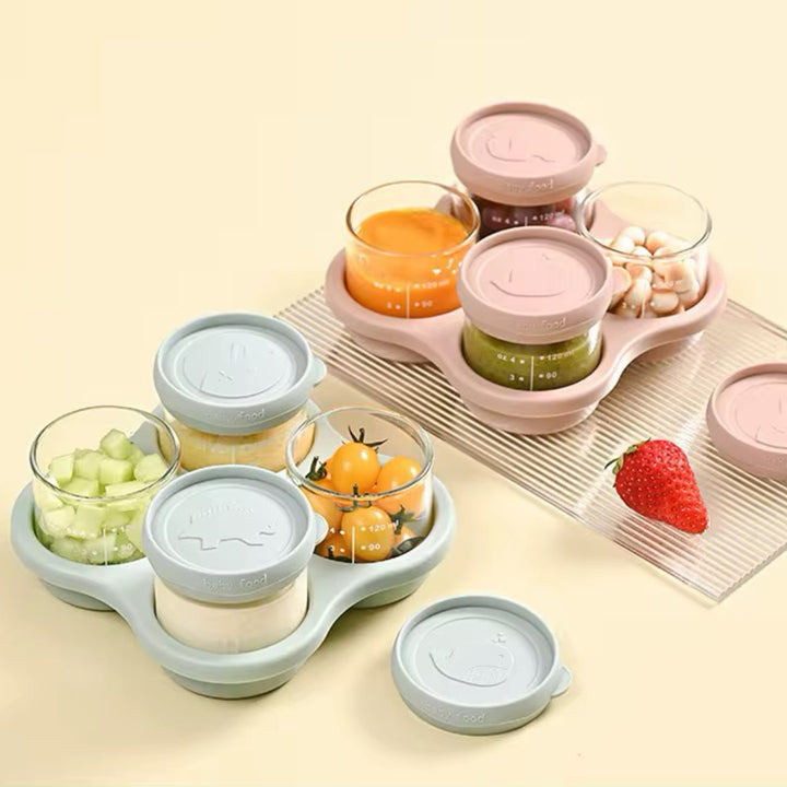 Perfectos para almacenar la comida de tu bebé de forma segura y organizada. Vienen con tapas herméticas y base organizadora, ideales para papillas, frutas y snacks. Reutilizables, resistentes y fáciles de llevar. ✨