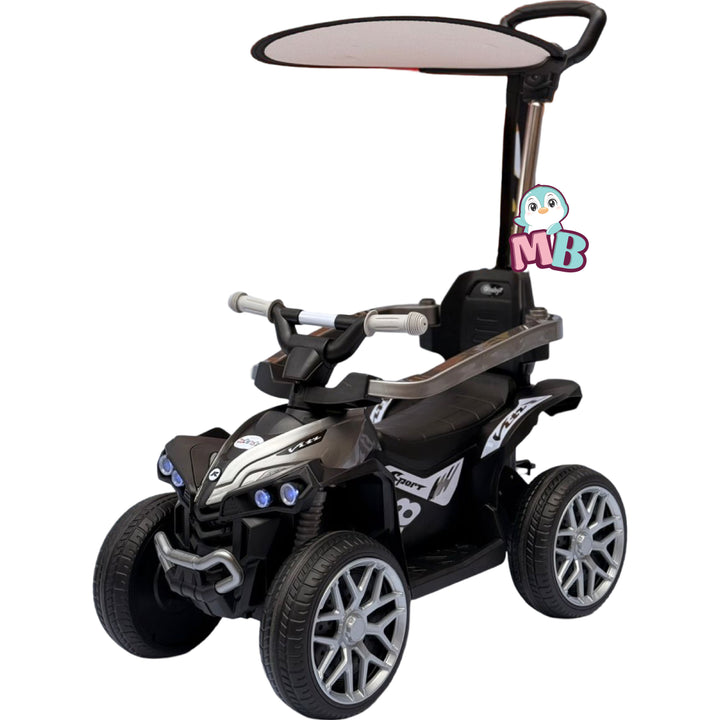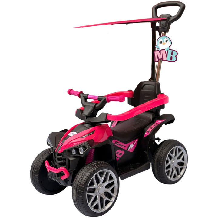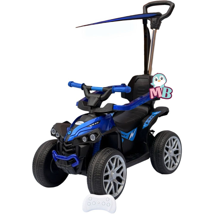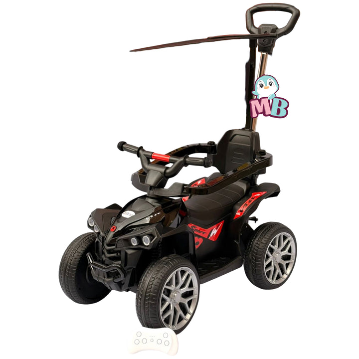 Estas cuatrimotos son perfectas para vivir grandes momentos al aire libre. Cuentan con control remoto para los papás, manubrio ergonómico, ruedas resistentes y asa de empuje ajustable, ideal para acompañar a tu peque en cada paseo.