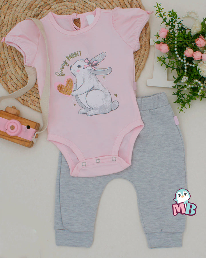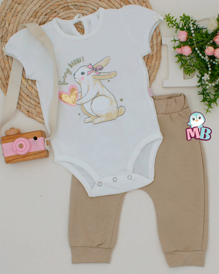 🐰💖 ¡Dulzura y comodidad en un solo conjunto! Estos sets para niña incluyen un body suave con tierno diseño de conejito y un jogger cómodo para moverse libremente.