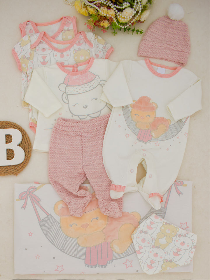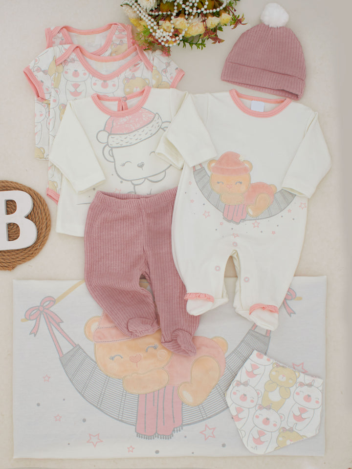 Estos sets vienen con todo lo que necesitas: enterizos, bodies, pantaloncito, gorrito, babero y mantita a juego 🧸.