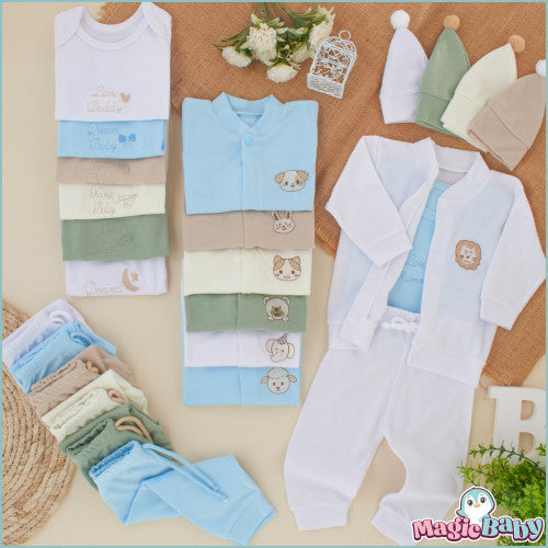 ¡Todo lo que tu bebé necesita para su primera semana! Este hermoso set de ropa incluye conjuntos completos para cada día, con diseños suaves, adorables y llenos de ternura.