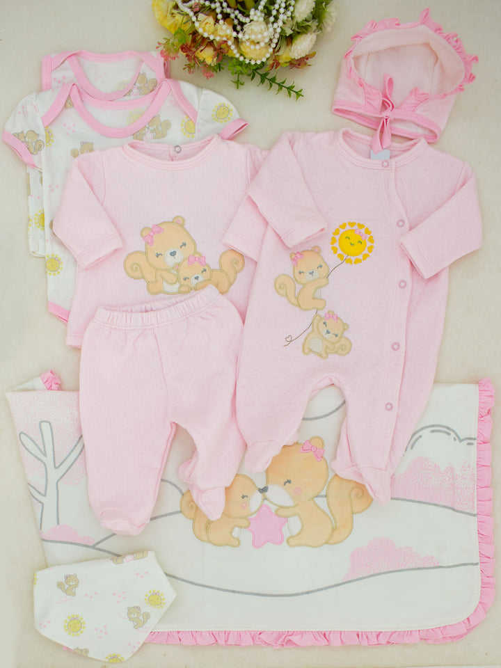 Estos sets vienen con todo lo que necesitas: enterizos, bodies, pantaloncito, gorrito, babero y mantita a juego 🧸.