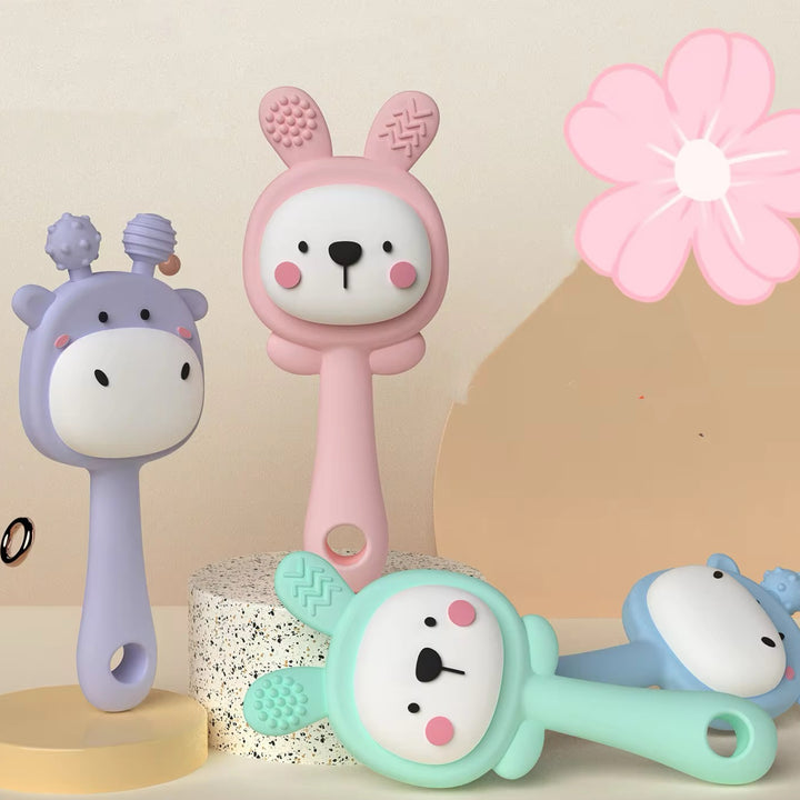 Estos adorables sonajeros con forma de conejito no solo entretienen a tu bebé con su dulce sonido, sino que también ayudan a calmar las molestias de la dentición gracias a sus puntitos de silicona suave. 🌟