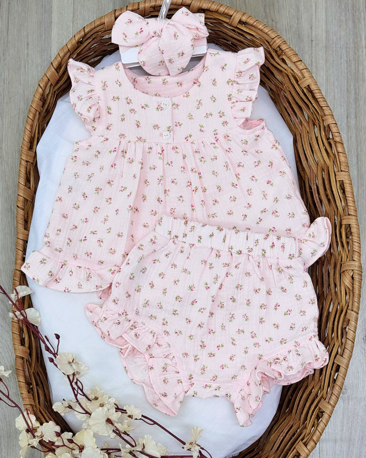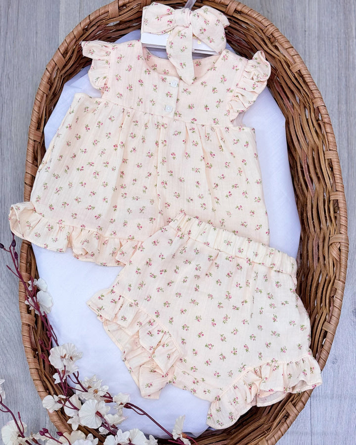 Estos vestiditos son ideales para que tu peque luzca preciosa y cómoda en cualquier ocasión. Están hechos en una tela suave, con un delicado estampado floral y un moño grande que los hace aún más especiales 💕.